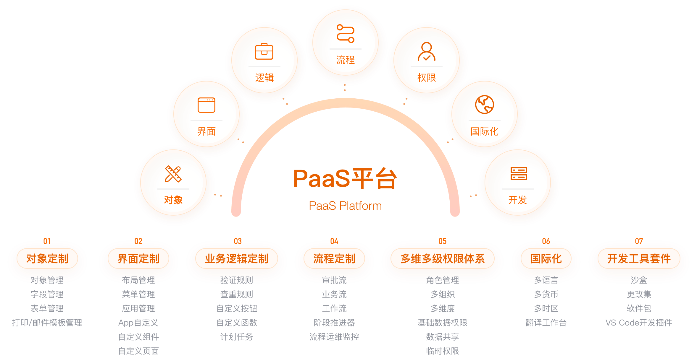 纷享销客PaaS平台提供多种流程能力,如审批流、业务流、工作流、阶段推进器,并与业务数据及操作深入集成。