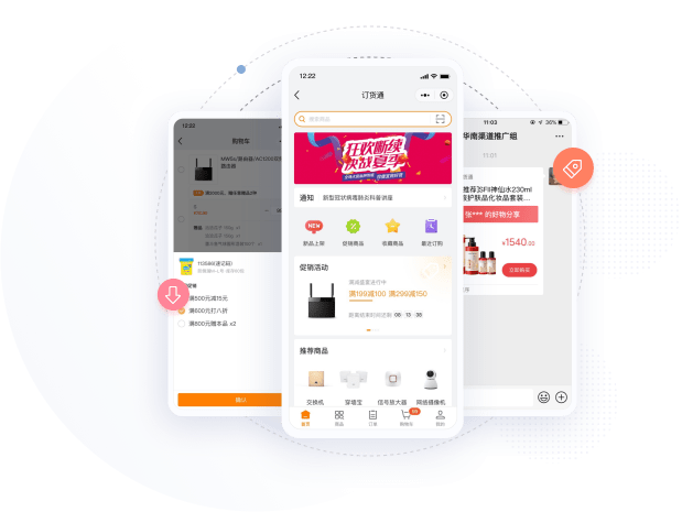 通过商品、价格、促销、订单等售中功能,实现具有B端系统强大能力以及C端电商订货体验