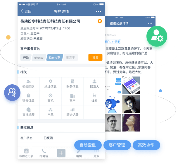 有效支持销售主管/人员对客户的管理、对销售机会的跟踪;